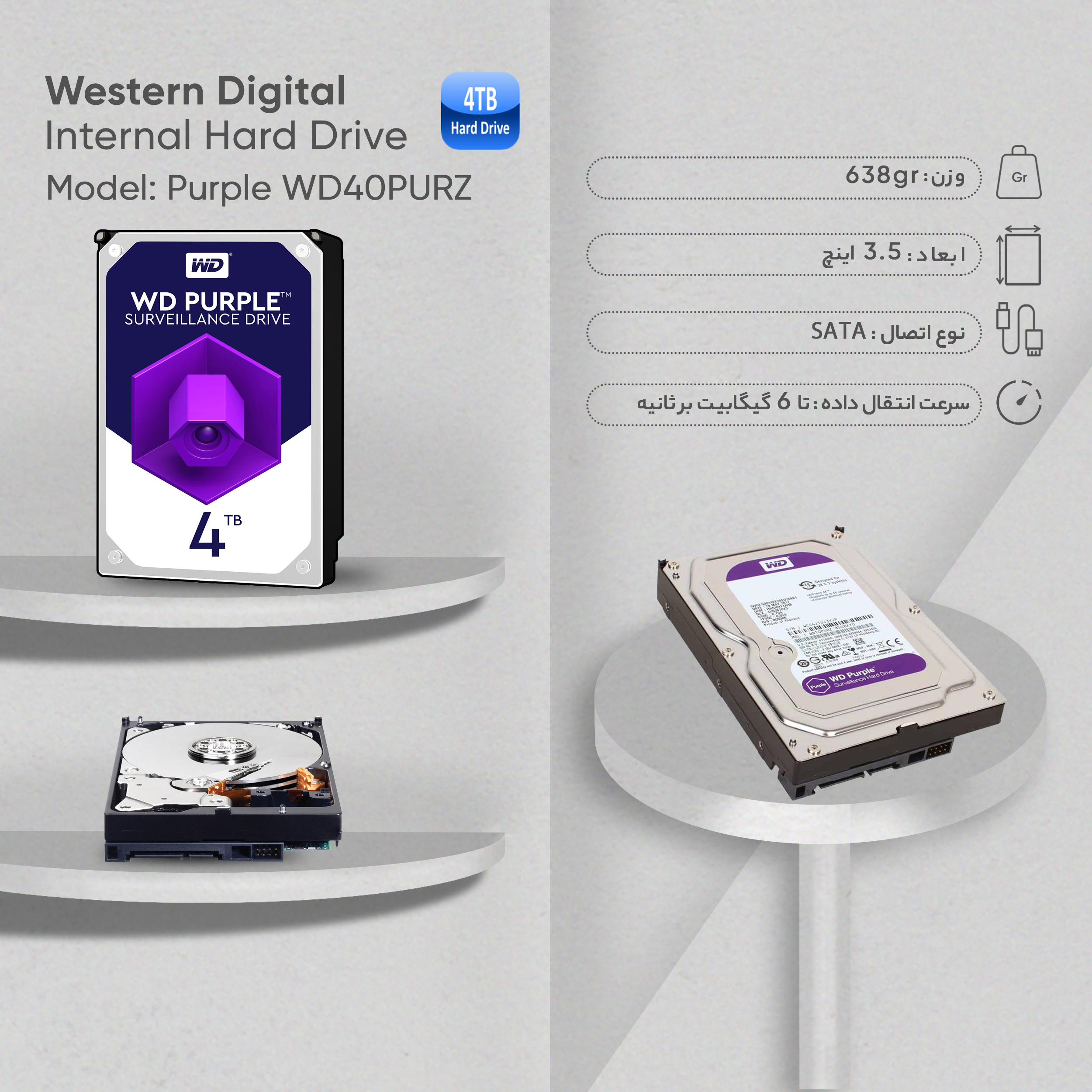 برای ذخیره سازی اطلاعات در سیستمهای حفاظتی به هاردهای اینترنال نیاز است تا از چندین دستگاه به طور همزمان پشتیبانی کند و بدون وقفه اطلاعات را در خود ذخیره کند.هارددیسک اینترنال «WD40PURZ» از تولیدات شرکت «وسترن دیجیتال» (Western Digital) است. این مدل در خانوادهی بنفش (Purple) سازنده جای میگیرد و برای استفاده از سیستمهای حفاظتی ساخته شده است. در سیستمهای حفاظتی و DVRها به هارددیسکی با توانایی ذخیرهی پیوستهی دادهها نیاز است و باید بتواند هر روز، حجم زیادی از دادهها را ذخیره کند. در WD40PURZ سازوکاری وجود دارد که امکان نوشتهشدن بیوقفهی اطلاعات را فراهم میکند. این مدل میتواند خروجی 64 دوربین نظارتی را به صورت همزمان روی خود ضبط کند که استفاده از آن را در سیستمهای مداربسته ایدئال میکند. ظرفیت هارددیسک 4 ترابایت است و سرعت چرخش پلاترهای آن 5400 دور بر دقیقه است. شصتوچهار مگابایت حافظهی کش برای ذخیرهسازی در نظر گرفته شده تا احتمال ازبینرفتن دادهها هنگام ذخیرهشدن به صفر برسد. به دلیل کیفیت ساخت بالای هارددیسک WD40PURZ، سازنده اعلام کرده است که میتوان سالانه تا 180 ترابایت داده را بدون هیچ مشکلی روی آن نوشت. WD40PURZ در فرم فاکتور 3.5اینچی ساخته شده است و برای نصب، به چنین فضایی نیاز دارد. اینترفیس ذخیرهسازی، رابط آشنای SATA 3.0 است و میتواند در بهترین حالت خود، به سرعت انتقال 6 گیگابیت بر ثانیه برسد.
